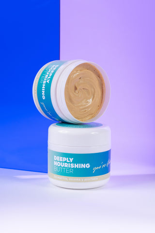 Mantequilla que nutre a profundidad para reparar pieles con síntomas de dermatitis, psoriasis y eczema. También es auxiliar para dar alivio y confortar la piel de otros síntomas como ampulas, llagas, prurito, descamación o ardor.